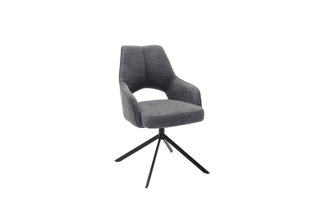 100% Polyester, Farbe anthrazit, Chenille Optik mit Keder, Gestell Ovalrohr schwarz matt lackiert, Taschenfederkern-Luxuskomfortsitz, 180° drehbar mit Nivellierung, Belastbarkeit bis maximal 120 kg, Sitz BHT ca. 48/49/46 cm, BHT ca. 57/89/66 cm