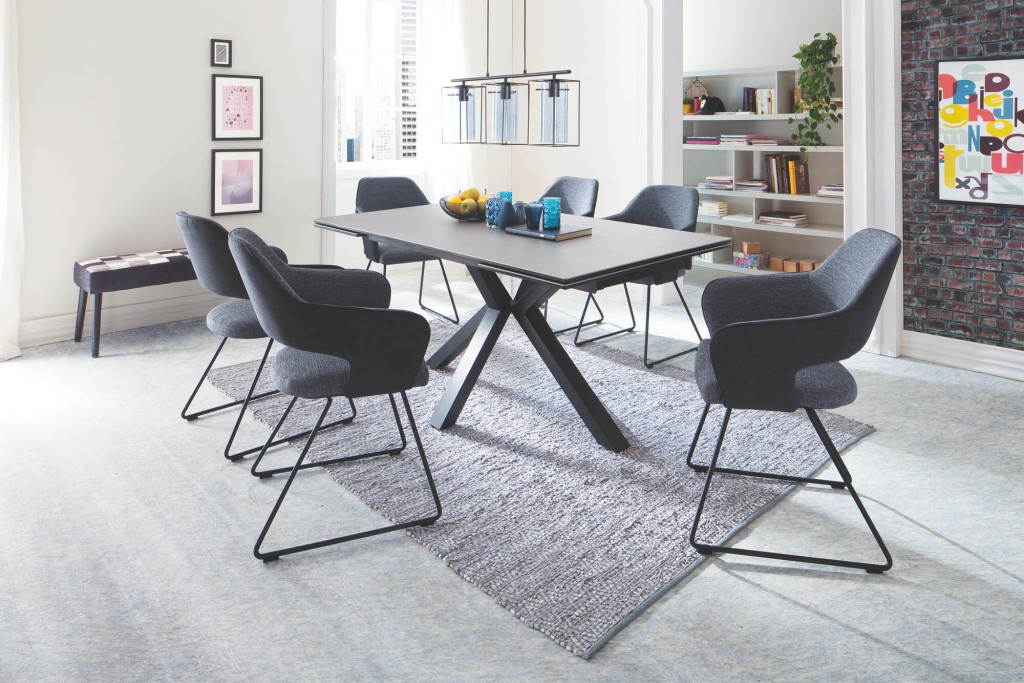 Entdecken Sie den eleganten Esstisch, der mit verschiedenen Gestellfarben perfekt an Ihre Einrichtung angepasst werden kann. Der praktische Stirnauszug ermöglicht es, den Tisch mühelos zu verlängern, sodass Sie immer ausreichend Platz für Ihre Gäste haben. Dieser Esstisch verbindet stilvolles Design mit hoher Funktionalität und wird zum Mittelpunkt Ihres Esszimmers. Genießen Sie gesellige Stunden in einem Ambiente, das sich harmonisch in Ihr Zuhause einfügt.