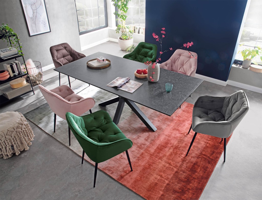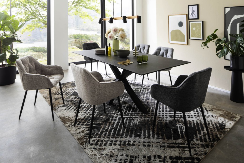 Erleben Sie eine neue Dimension von Stil und Eleganz mit unserem Esstisch, dessen Gestell aus schwarzem Metall gefertigt ist. Dieses hochwertige Möbelstück besticht durch sein modernes Design und seine hervorragende Verarbeitung. Das robuste Gestell aus pulverbeschichtetem Metall in Schwarz verleiht dem Tisch nicht nur Stabilität, sondern auch einen Hauch von industrieller Ästhetik. Die Pulverbeschichtung sorgt für eine Oberfläche, die zugleich langlebig und widerstandsfähig gegen Kratzer und Abnutzung ist. Die Tischplatte besteht aus einer Kombination aus Keramik und Glas in elegantem Schwarz. Diese Materialien sind bekannt für ihre Haltbarkeit und Pflegeleichtigkeit. Gleichzeitig verleihen sie dem Tisch ein edles Aussehen und eine angenehme Haptik. Mit seinen großzügigen Maßen bietet der Esstisch genügend Platz für Mahlzeiten im Kreise Ihrer Liebsten oder gesellige Runden mit Freunden. Ob zum Frühstück, Mittag- oder Abendessen – dieser Tisch wird schnell zum zentralen Treffpunkt in Ihrem Zuhause. Dieser Esstisch vereint Funktionalität und Design auf perfekte Weise. Er passt sich nahtlos an verschiedene Einrichtungsstile an und verleiht jedem Raum eine zeitlose Eleganz. Mit seinem minimalistischen Design setzt er einen stilvollen Akzent, ohne dabei dominant zu wirken.