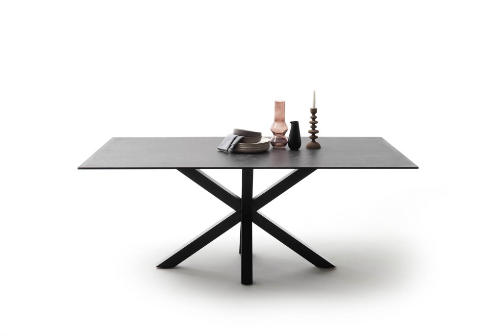 Gestell Metall schwarz, rau pulverbeschichtet, Platte Keramik und Glas schwarz, LBH ca. 200/100/76 cm