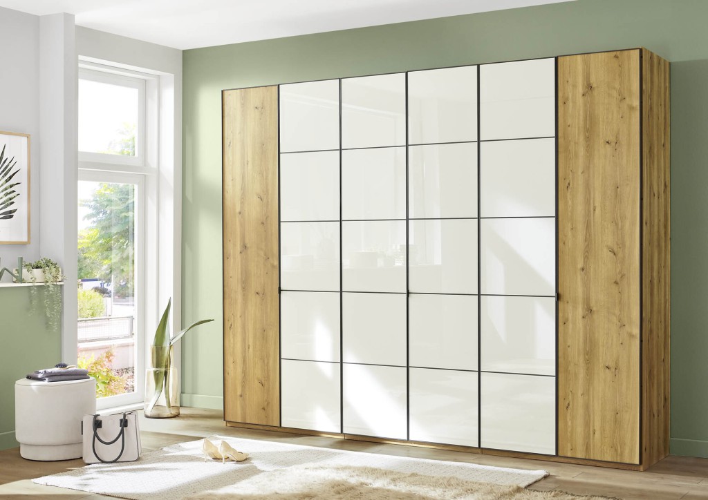 Kleiderschrank 6-türig, 4 Glastüren, ohne Passepartout und Beleuchtung, BHT ca. 300/216/58 cm