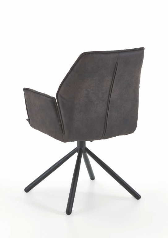 Microfaser, 100% Polyester, Farbe anthrazit, mit legerem Rückenpolster, Gestell Stativ Eisen schwarz, 180° drehbar mit Rückholfunktion, Sitzhöhe 49 cm, Armlehnenhöhe 65 cm, bis zu 140 kg belastbar, BHT ca. 58/90/60 cm